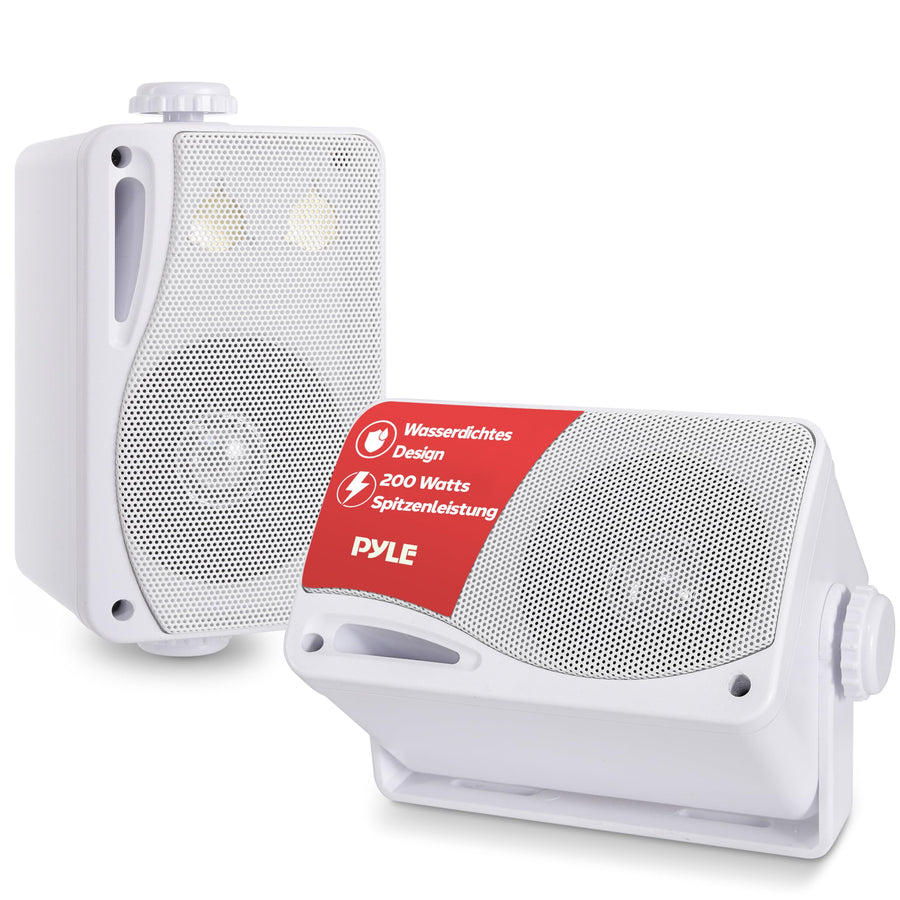 Pyle Wasserdichte Lautsprecher 3.5-Zoll-200-Watt 3-Wege Wetterfeste Mini Box, Weiss, PLMR24, Weiss