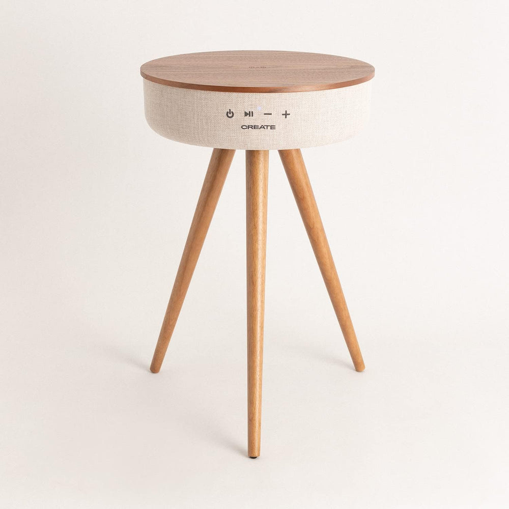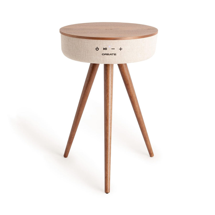 CREATE / Speaker Tisch/Tisch Lautsprecher aus dunklem Holz/Bluetooth und kabellosem Smartphone-Ladeg