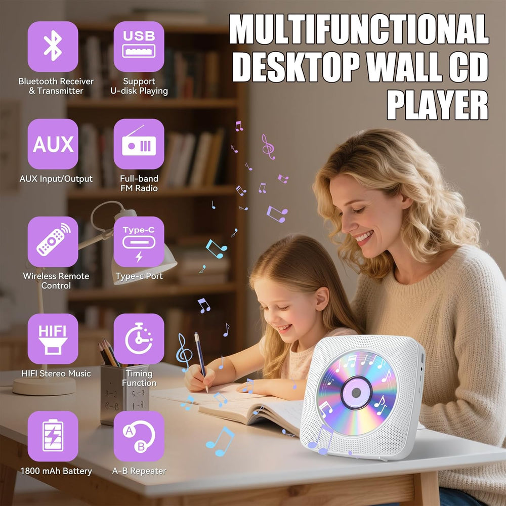 Gueray Desktop CD Player Bluetooth CD-Spieler mit Lautsprechern für Zuhause 1800mAh Tragbarer CD-Pla