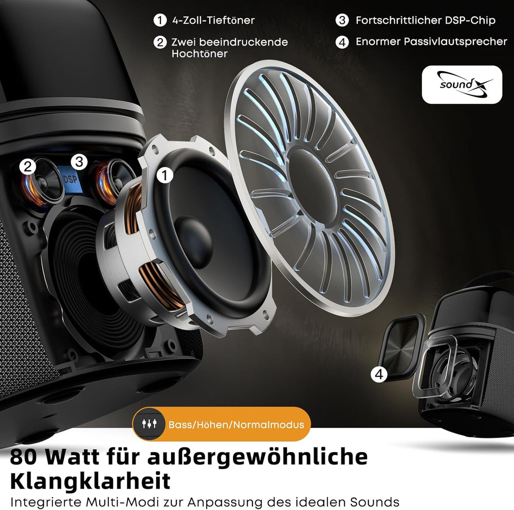 CYBORIS 2-in-1 Tragbarer 40W Dual Bluetooth Lautsprecher, Wasserdichter Musikbox V5.3 mit Tiefem Bas