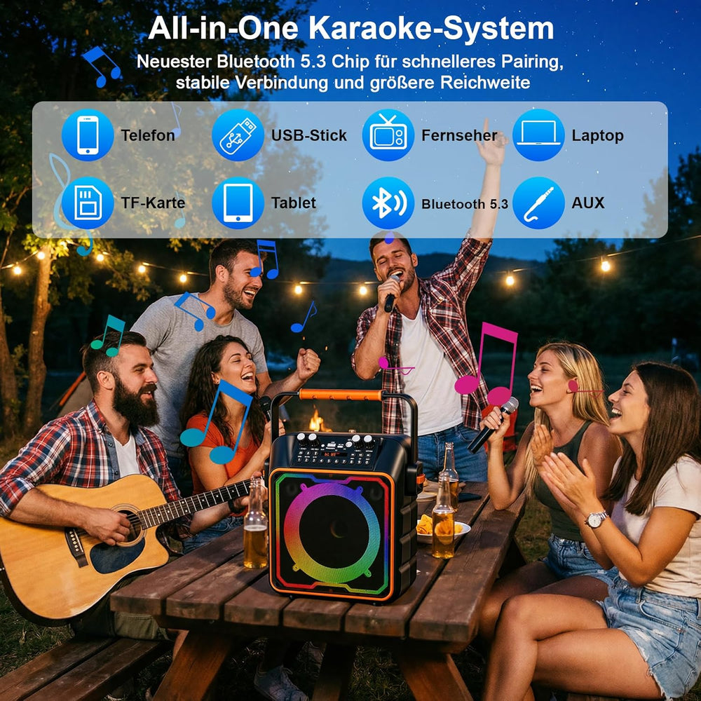 Karaoke Maschine mit 2 Mikrofonen für Erwachsene und Kinder Bluetooth Lautsprecher mit Vorverstärker