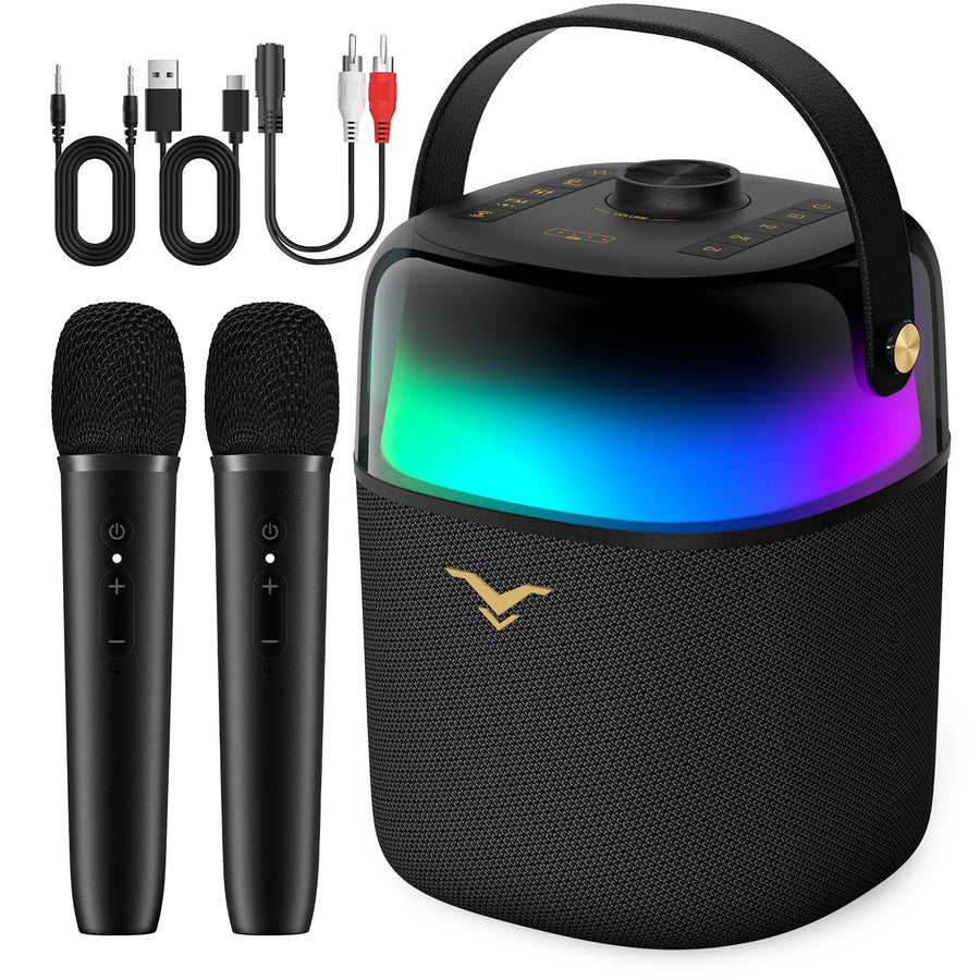 Karaoke Maschine mit 2 Mikrofone, Tragbaren Bluetooth Lautsprecher Box für Erwachsene/Kinder mit Lic