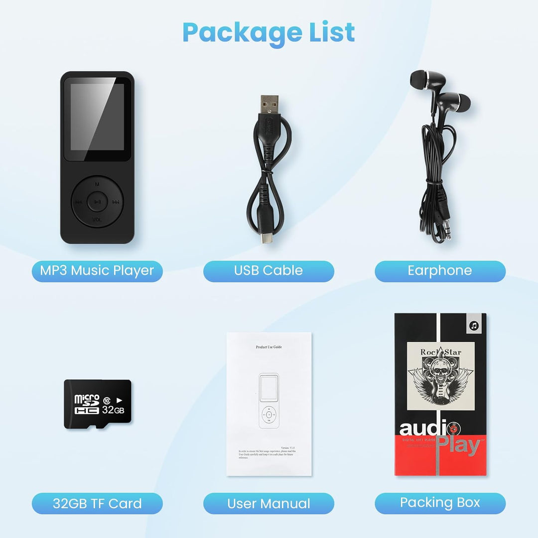 - 70 Stunden Wiedergabezeit mit 32 GB Speicher : Bis zu 70 Stunden Wiedergabezeit haben Sie keine Sorge, dass der Akku nicht schnell ist. Mit 32 GB Speicher kann 4000 Lieder gespeichert werden, unterstützt bis 128GB. 1,8 Zoll TFT-Farbbildschirm ist klares