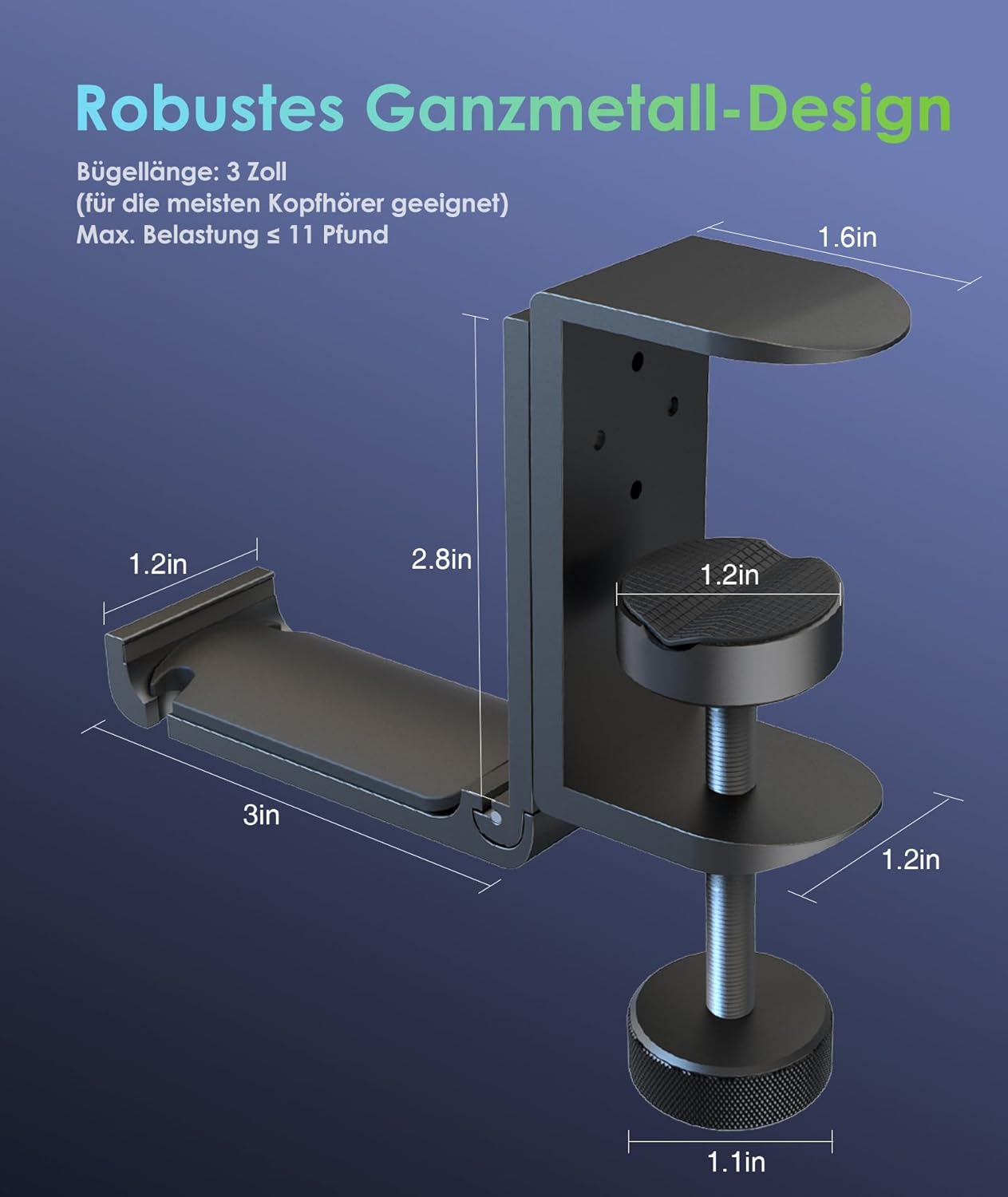 - 【Einfache Installation】 Kein Klebstoff, kein Bohren, verstellbares Design, dieser headset halter kann fest auf einem Tisch unterschiedlicher Dicke (bis zu 5 cm) befestigt werden, einfach zu montieren und demontierbar in wenigen Sekunden. Stilvoll und