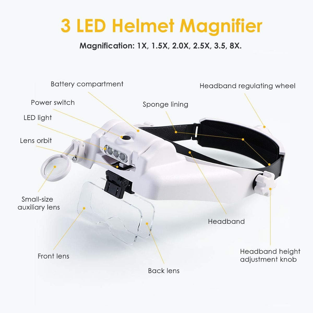 - 【Praktisches Lupenarbeitslicht】 - Die Lupenarbeitslampe mit zahlreichen verfügbaren Vergrösserungen verbessert die Sehbehinderung und bietet Ihnen eine klare Sicht auch beim Nähen. Sie ist im Kopfbandstil hergestellt und völlig freihändig. Ideal