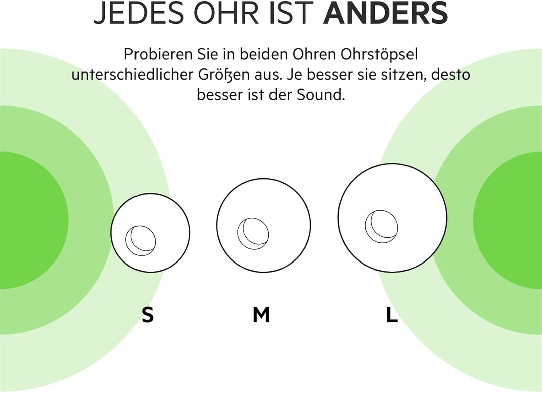 - Welche komponenten sind im lieferumfang des produkts enthaltenen: USB-C-Laden, Ohrstöpsel in 5 Grössen (XXS, XS, S, M, L)