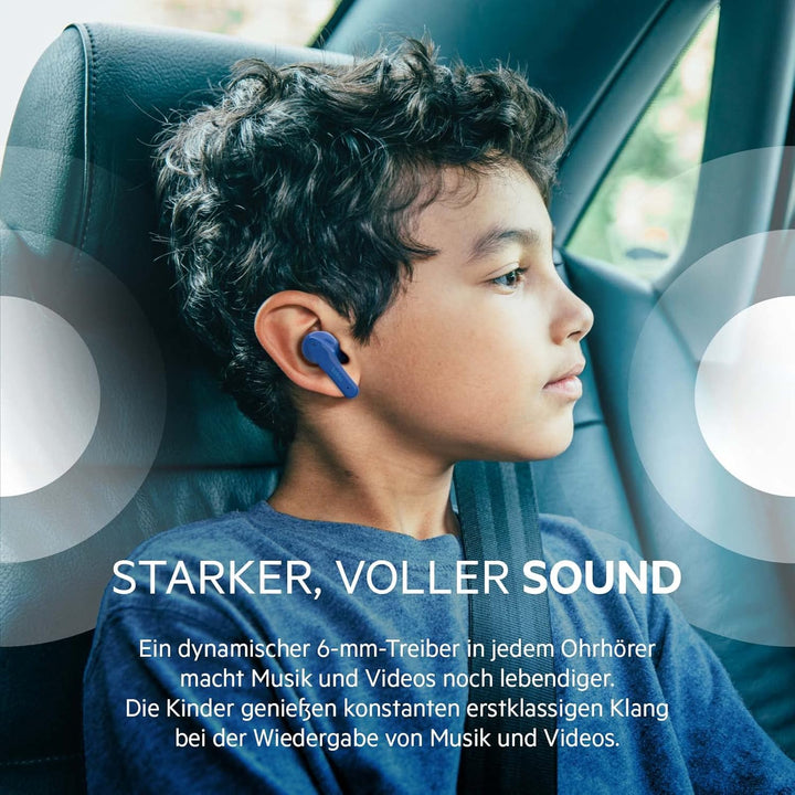 - Eine Lautstärkebegrenzung von 85 dB dient zum Schutz der empfindlichen Ohren der Kinder