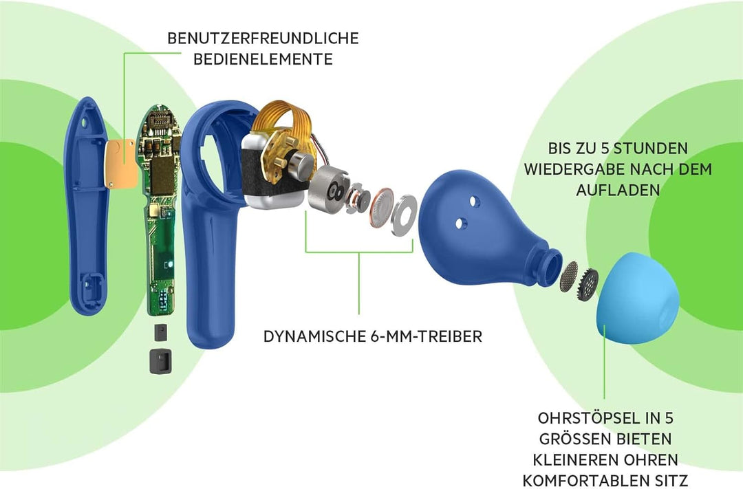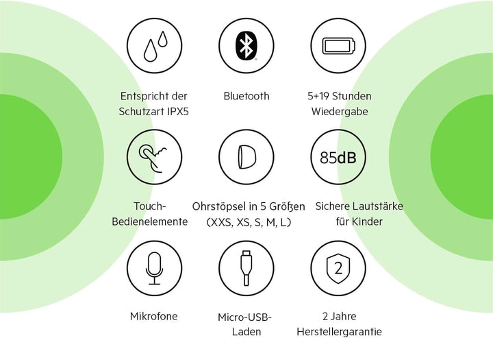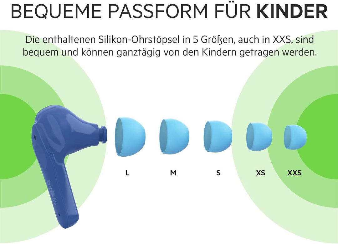 - Hergestellt für kleinere Ohren: Ohrstöpsel in 5 unterschiedlichen Grössen sorgen für einen guten Sitz, wenn die Kinder Musik hören