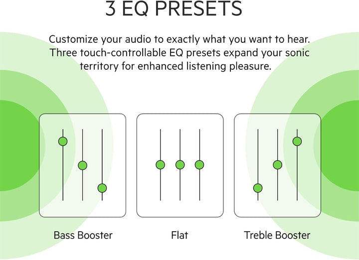- Dynamische 6-mm-Treiber und 3 Equalizer-Voreinstellungen, die sich über Berührung steuern lassen, sorgen für eine grossartige Audioqualität mit persönlich auf Sie abgestimmtem Sound.