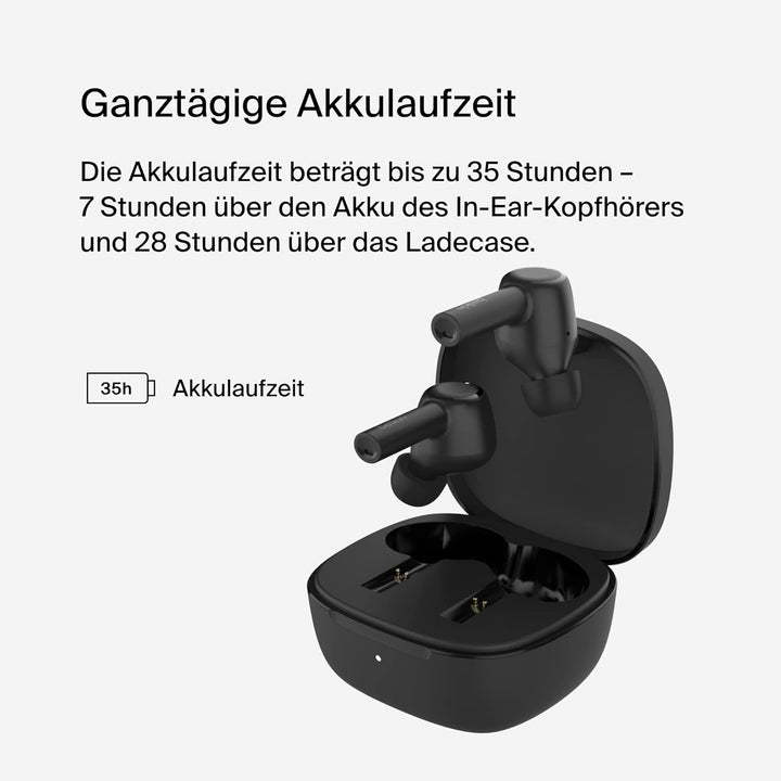 - GANZTÄGIGER BETRIEB UND HOHE TONQUALITÄT: Da die Akkulaufzeit 35 Std. beträgt, können Sie den Kopfhörer den ganzen Tag nutzen. 6 Mikrofone mit einem Algorithmus zur Geräuschunterdrückung eignen sich zur Verwendung von jeweils einem Ohrhörer im