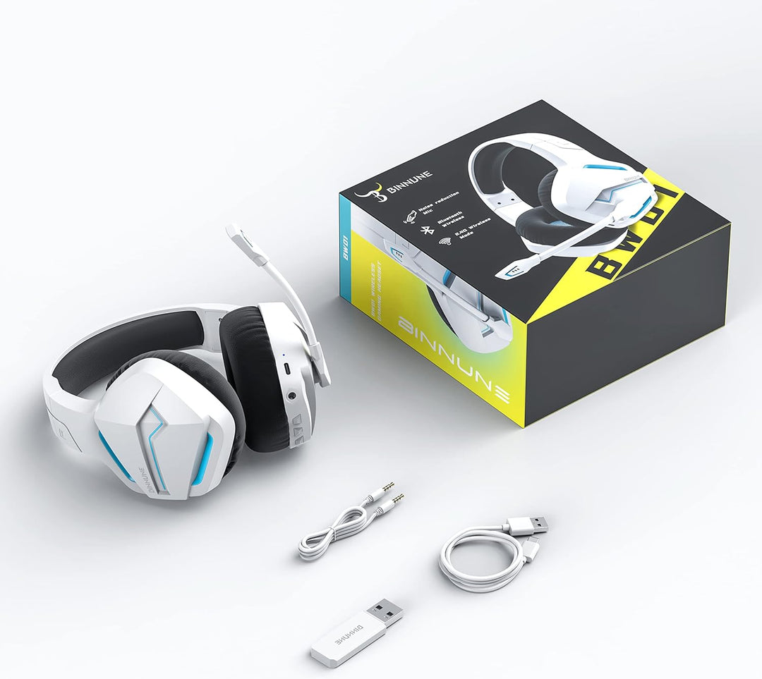 - 【2,4G Wireless und Bluetooth 5.0】BINNUNE Headset Kabellos kombiniert fortschrittliche, verlustfreie 2,4G Wireless für professionellen Gaming-Sound auf PC und PS4, PS5 mit dem Komfort der Bluetooth-Konnektivität Ihrer mobilen Bluetooth-Geräte. Sie