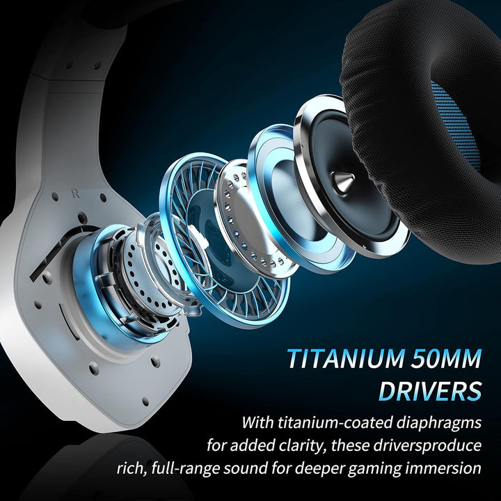 - 【Immersives Spielerlebnis】Der 50mm-Lautsprecher und drahtlose 2,4G unterstreicht subtile und kritische Hintergrundgeräusche. Sie können viele Details hören, damit Ihnen während des Spiels kein Schritt oder keine Aufnahme entgeht.