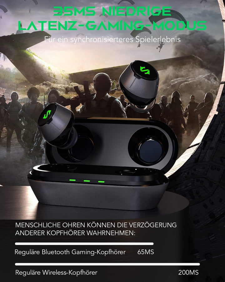 - 【Ultra-niedrige Latenz von 35ms】: Aktiviere den Gaming-Modus, um die marktführende kabellose Performance der Black Shark Lucifer T4 Bluetooth kopfhörer zu nutzen, während du mit Bluetooth-Geräten spielst – für ein synchronisiertes Spielerlebnis
