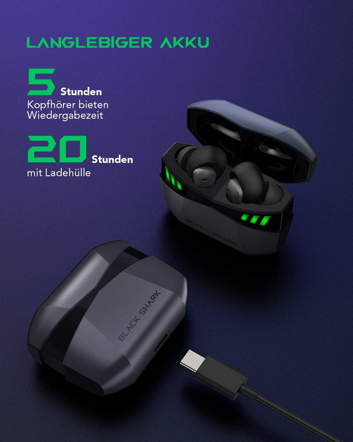 - 【Bluetooth 5.2 Hohe Kompatibilität】: Die Black Shark Lucifer T2 Kopfhörer Kabellos enthalten die fortschrittliche Bluetooth 5.2-Technologie, die die Übertragungsgeschwindigkeit erheblich verbessert und eine schnellere und stabilere Verbindung