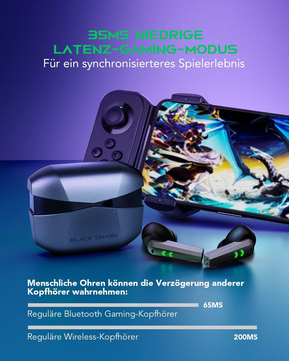 - 【35ms extrem geringe Latenz】: Aktiviere den Gaming-Modus, um die hervorragende kabellose Leistung des Black Shark Lucifer T2 Bluetooth kopfhörer beim Spielen mit Bluetooth-Geräten für ein reibungsloses Erlebnis zu nutzen. Mach dich bereit für ein