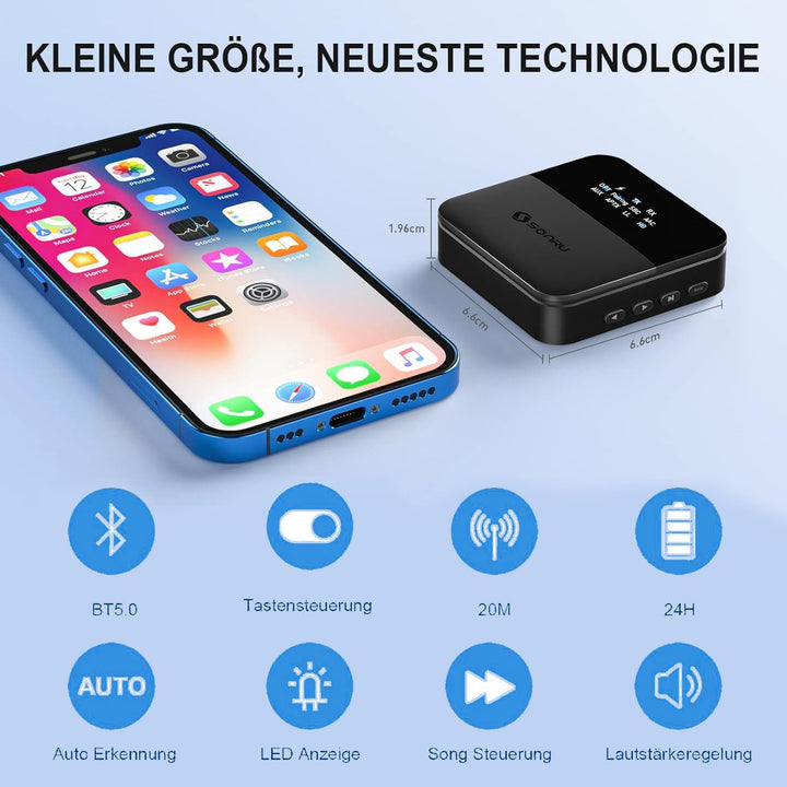 - 【Unterstützung für zwei Kopfhörer / Lautsprecher + Automatische Verbindung】Der TX und RX Modus unterstützt die gleichzeitige Verbindung von zwei Bluetooth-Geräten, sodass Sie den Spass mit Ihre Freunde teilen können. Der Bluetooth-Adapter