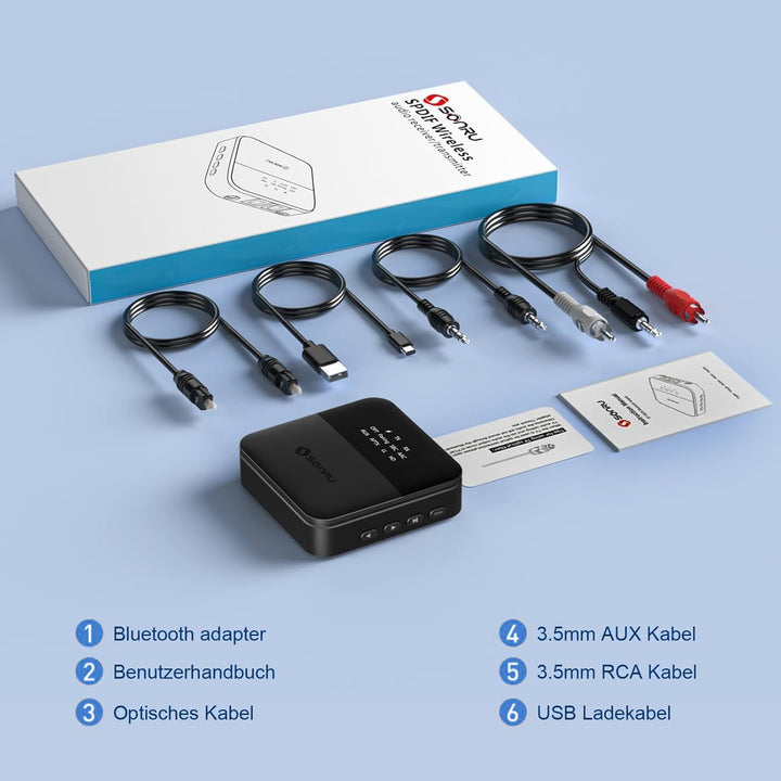 - 【2022 Neueste Version】 Neue besonderheit: identifiziert es automatisch die AUX- und SPDIF-Verbindung. Intelligente LED-Anzeige -- Das blaue LED-Licht kann den Echtzeitstatus der Codec-Übertragung im RX / TX-Modus anzeigen. Wenn Bluetooth