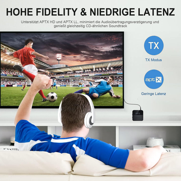 - 【AptX HD + aptX LL】Verwendet es der neueste CSR8675-Chipsätze und Bluetooth 5.0-Versionen. Dieser 2-in-1-Bluetooth-Sender (TX) / Empfänger (RX), AptX HD (High Definition) und AptX LL (Low Latency) sind kompatibel. Mit aptX HD können Sie