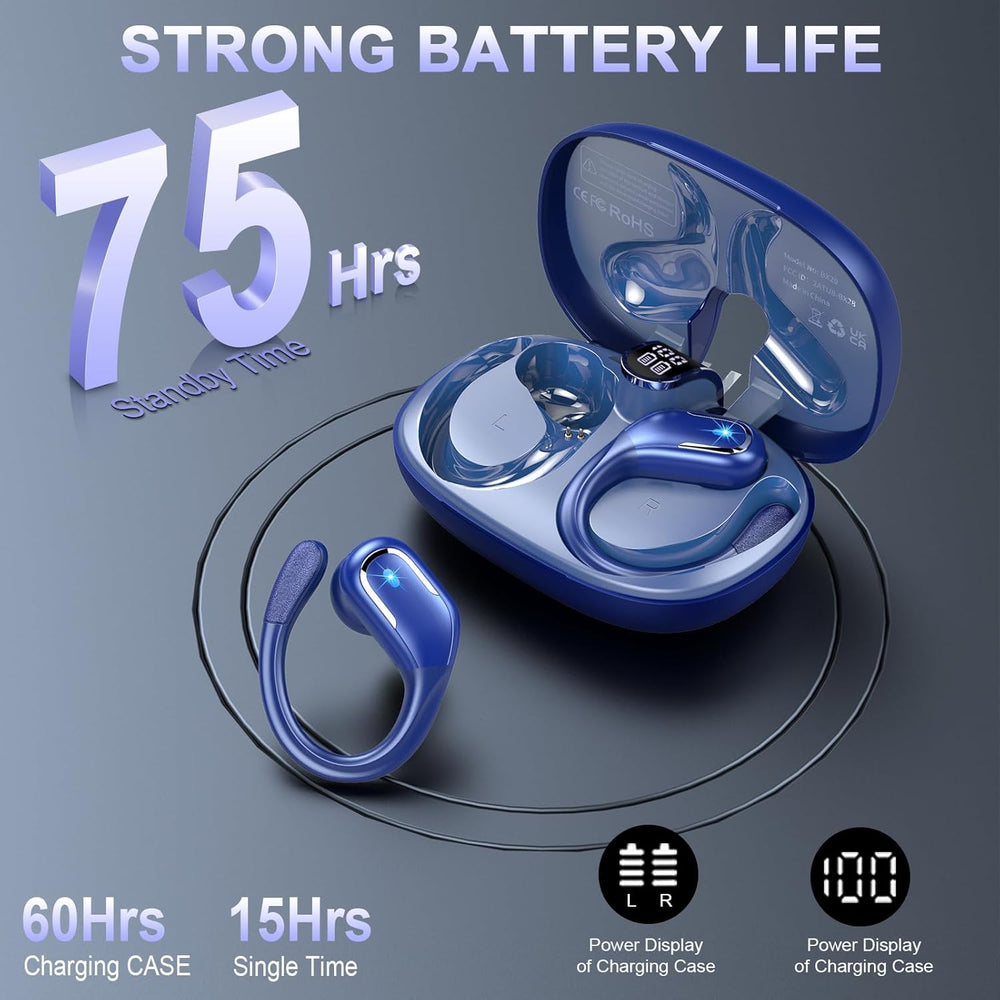- 75 Stunden Spielzeit und LED Digitalanzeige: Kopfhörer bluetooth können bis zu 15 stunden mit einer einzigen ladung verwendet werden, der akku mit einer kapazität von 480 mAh verlängert die gesamtlaufzeit auf 75 stunden. Mit einer intelligenten LED