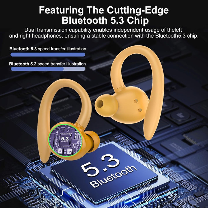 - Nahtlose Verbindung: Diese bluetooth kopfhörer verwenden die fortschrittliche Bluetooth 5.3-Technologie, die eine doppelte Übertragungsgeschwindigkeit bietet und eine stabilere Verbindung gewährleistet. Geniessen Sie eine sofortige und mühelose
