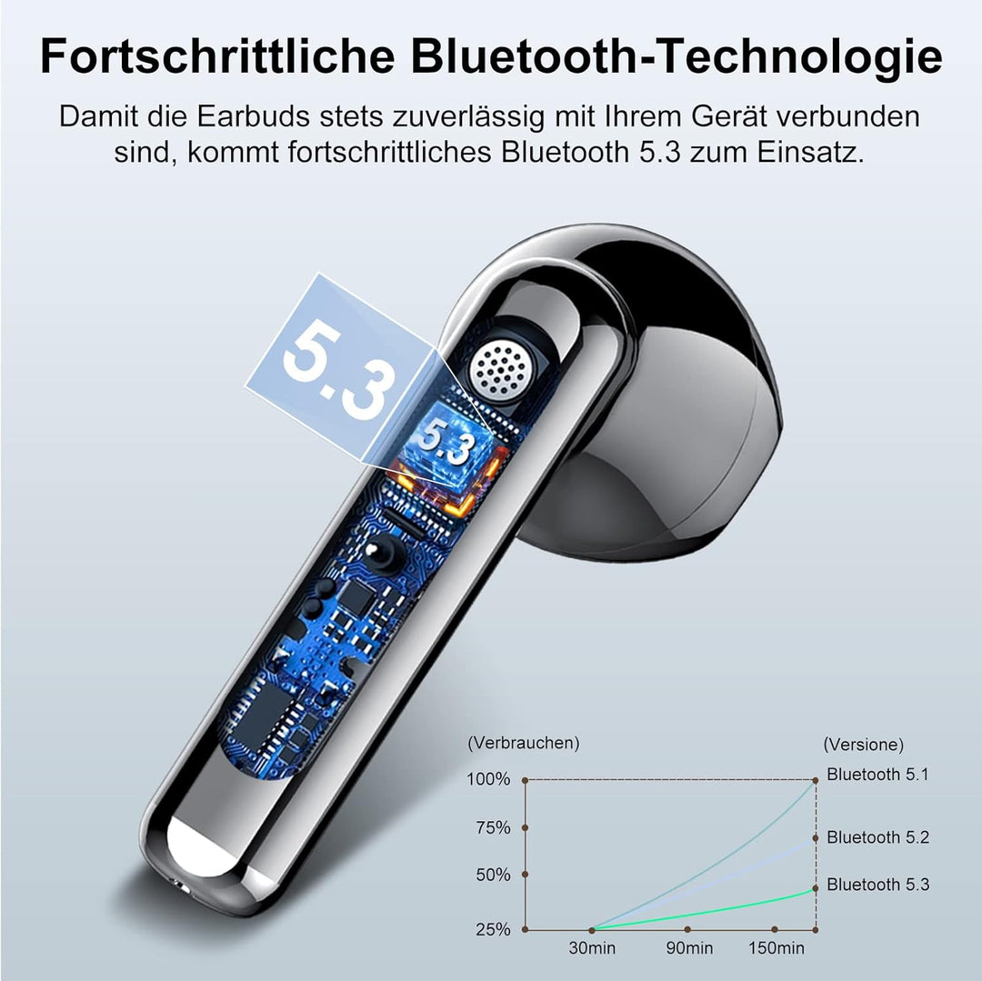 - Non-Stop-Musik: Eine einzige volle Ladung liefert bis zu 6 Stunden Akkulaufzeit für jeden in ear Kopfhörer, während der Ladekoffer 24 Stunden mehr Spielzeit bietet. Verwenden Sie einen der beiden Earbuds, während der andere lädt, für extralange