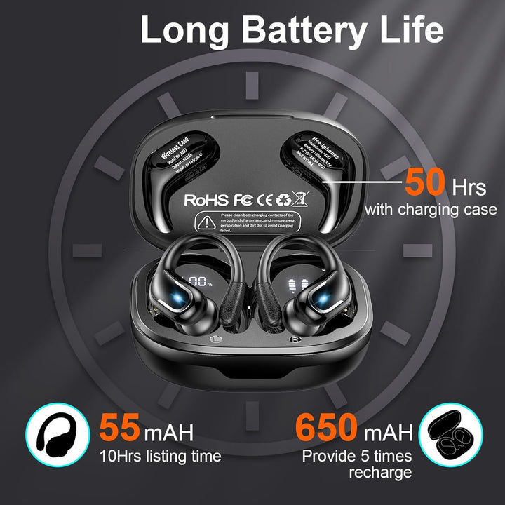 - Längerer Hörgenuss und Dual-LED-Leistungsanzeige: Die headphones bieten bis zu 15 Stunden hochwertige Klangausgabe mit einer einzigen Ladung, und die mitgelieferte Ladehülle bietet zusätzliche 5 Ladungen, wodurch die ohrhörer bluetooth eine
