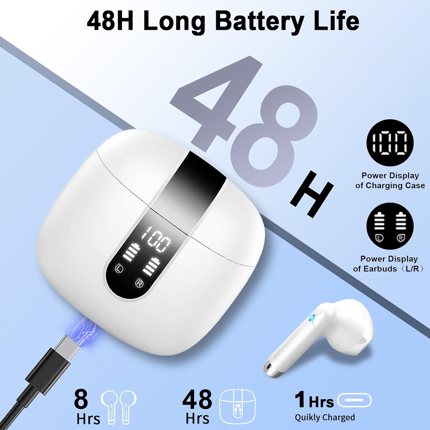 - Mini LED Ladeetui und 48 Stunden Akkulaufzeit: Bluetooth kopfhörer in ear ist mit einer intelligenten digitalen LED-Anzeige ausgestattet, die die verbleibende Leistung im digitalen Format genau anzeigen kann. Einmal Typ-C-Schnellladung aufgeladen,