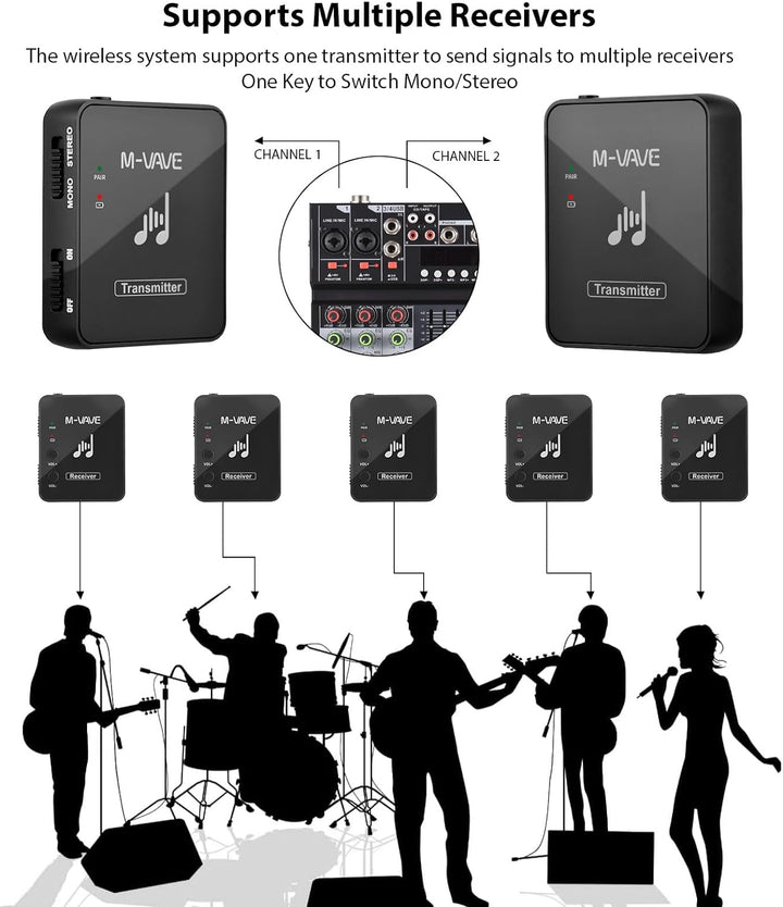 - 2,4-GHz-Funkübertragungsband, 24-Bit/48-kHz-Abtastrate.