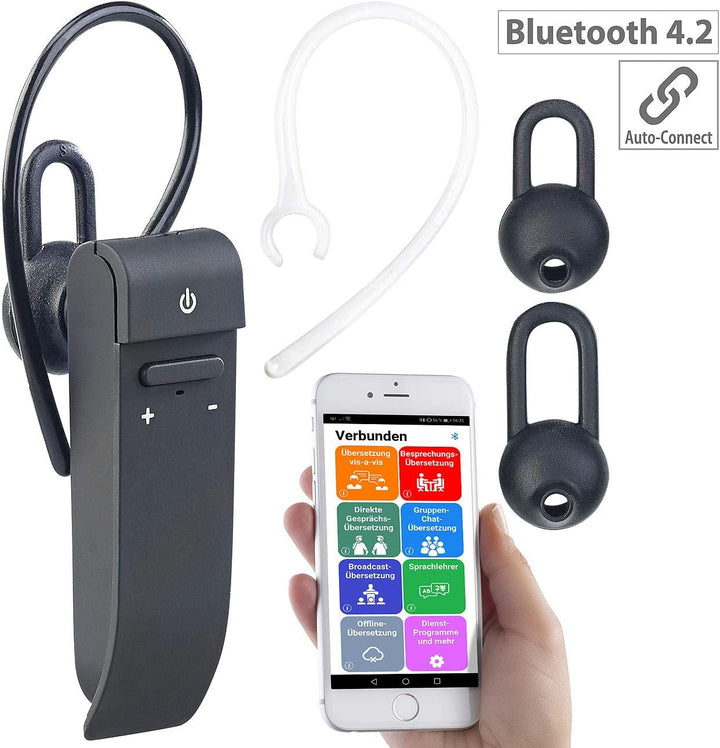 - Headset IHS-680.tl inklusive Ohrhörer-Aufsätzen in 3 Grössen, flexiblem Ohrbügel, USB-Ladekabel und deutscher Anleitung. Live Sprachübersetzer - Ausserdem relevant oder passend zu: Freisprecheinrichtung, Lautsprecher iPad, Übersetzungsgerät,