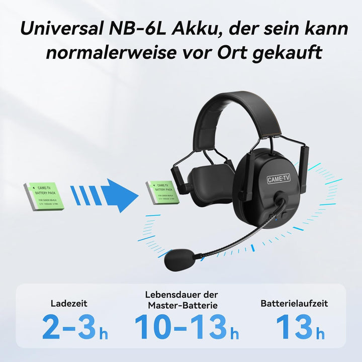 - 【Universeller NB-6L-Akku und mehr als 10 Stunden Laufzeit】 Die Laufzeit des Master-Headsets kann 10 Stunden und die der Remote-Headsets etwa 13 Stunden dauern. Bleiben Sie für die Kommunikation immer mit Ihrem Team in Kontakt. Die drahtlosen