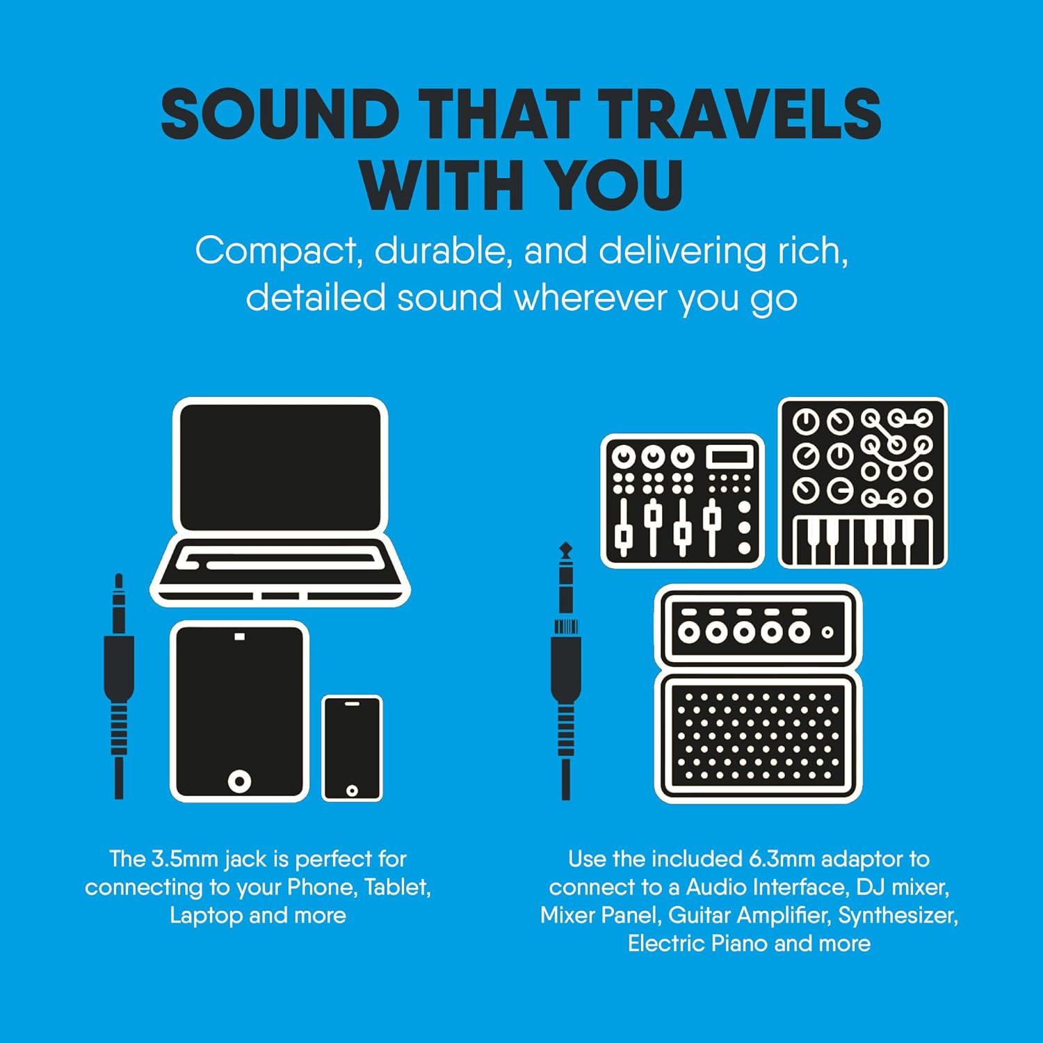 - Dank des zusammenklappbaren Designs sind diese Kopfhörer auf Reisen super einfach zu verstauen. Mit den um 180° verstellbaren Ohrmuscheln können die Kopfhörer beim Einpacken oder auf einem Tisch flach hingelegt werden.
