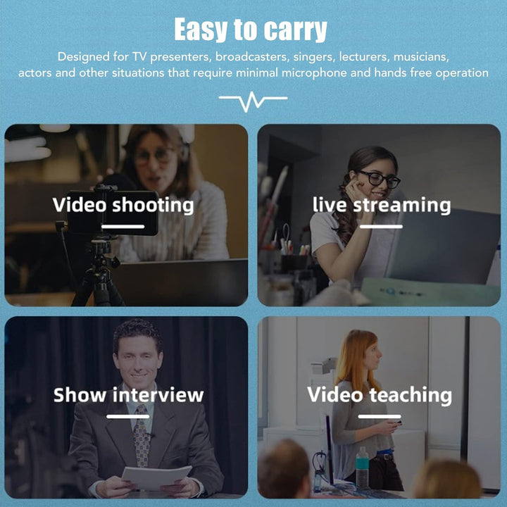 - GEEIGNET FÜR MENSCHEN: Das Headset-Mikrofon ist für Fernsehshow-Moderatoren, Sender, Sänger, Dozenten, Musiker, Schauspieler und andere Situationen konzipiert, die ein minimales Mikrofon und einen Freisprechbetrieb erfordern.