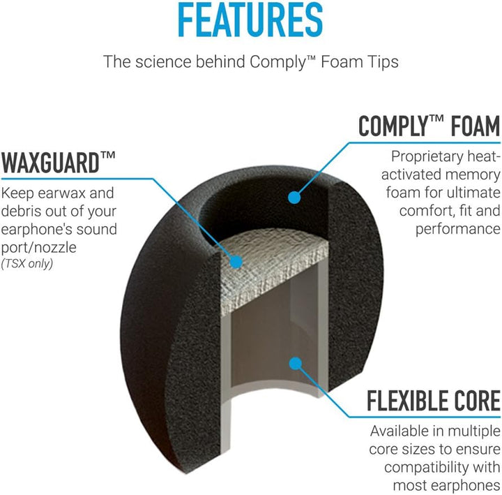 - Maximaler Tragekomfort: Geniessen Sie den höchsten Tragekomfort und befreien Sie sich von Schmerzen durch Silikonspitzen. Comply-Ohrstöpsel aus Memory-Schaum bieten ganztägige Bequemlichkeit und passen sich individuell an Ihr Ohr an, für