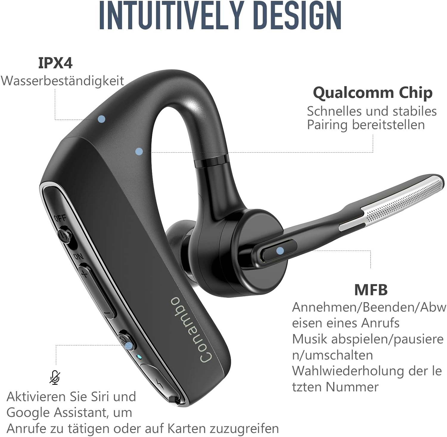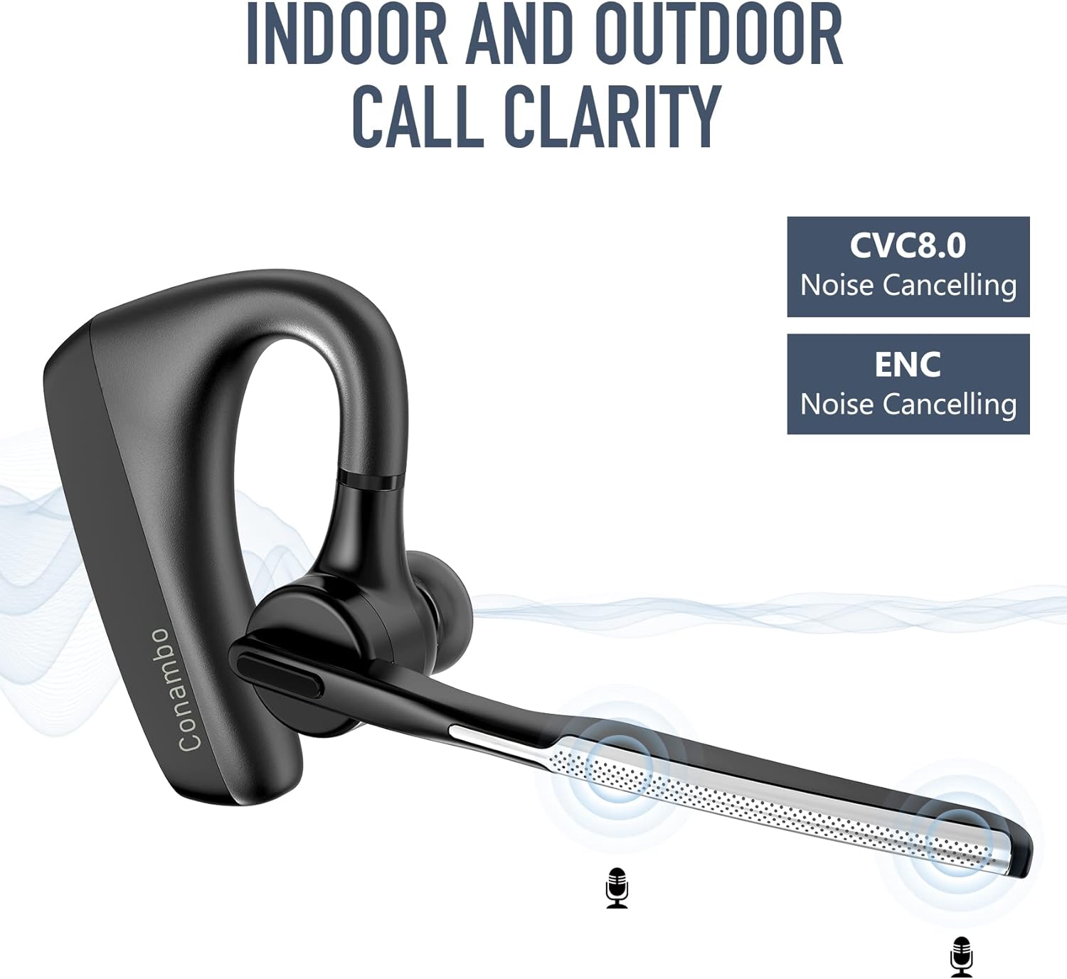 - Zuverlässige Leistung: Das Conambo K18 Headset kann in einem Radius von 10 m um ein Smartphone oder Bluetooth-Gerät verwendet werden - bis zu 16 Stunden ununterbrochene Gesprächszeit und bis zu 720 Stunden Standby-Zeit.