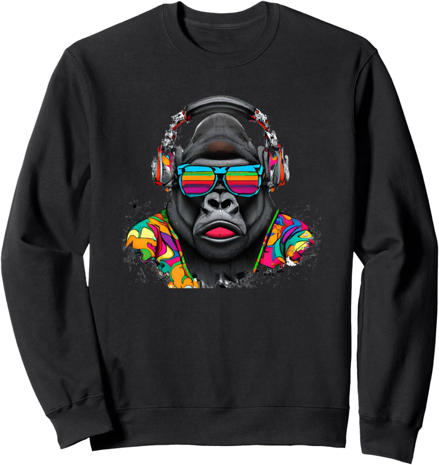 PRODUKTBESCHREIBUNGEN Dieses coole und lustige Hippie-Design zeigt ein niedliches Tier mit Kopfhörern und farbenfrohen Sonnenbrillen, die Musik hören, die groovy aussieht. Animal Lover Cool Primate Men Women Youth Design ist perfekt für Affenliebhaber oder Affenbesitzer.