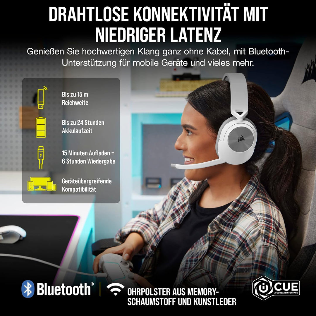 - 2,4-GHz-Wireless- oder Bluetooth-Verbindung mit geringer Latenz: Geniessen Sie hochwertigen Klang ganz ohne Kabel, mit einer Reichweite von bis zu 15 Metern, 24 Stunden Akkulaufzeit sowie Bluetooth-Unterstützung für mobile Geräte und vieles mehr