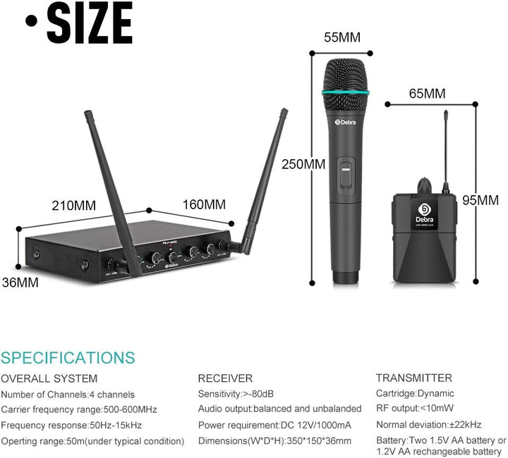 - Debra Audio AU400 4 Kanal Wireless Mikrofon System.(Zwei eingestellte Freuqncy Punkt: A- 501/511.5/524/538.5 B-506/517.5/531/546.5)