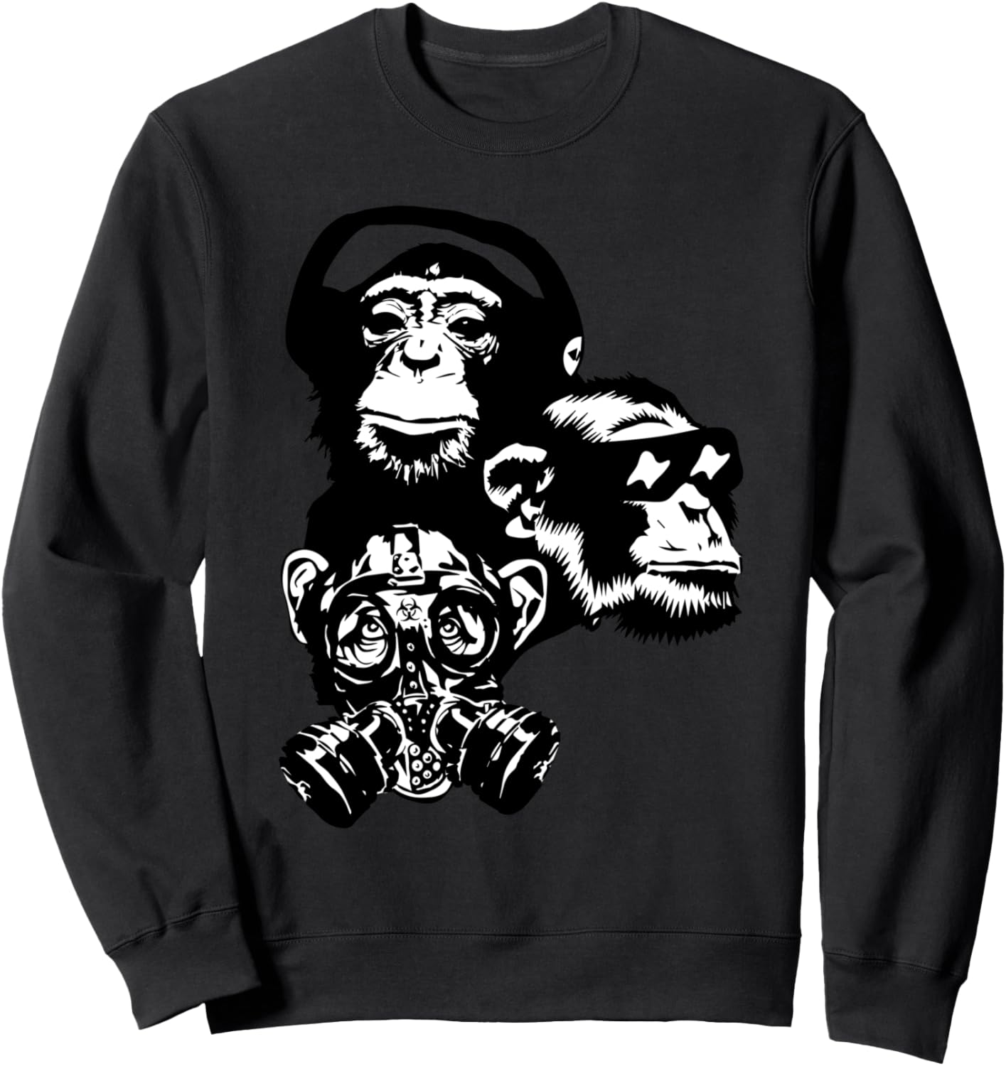 Drei Weise Affen Kopfhörer Gasmaske Schlafmaske Lustiges Sweatshirt