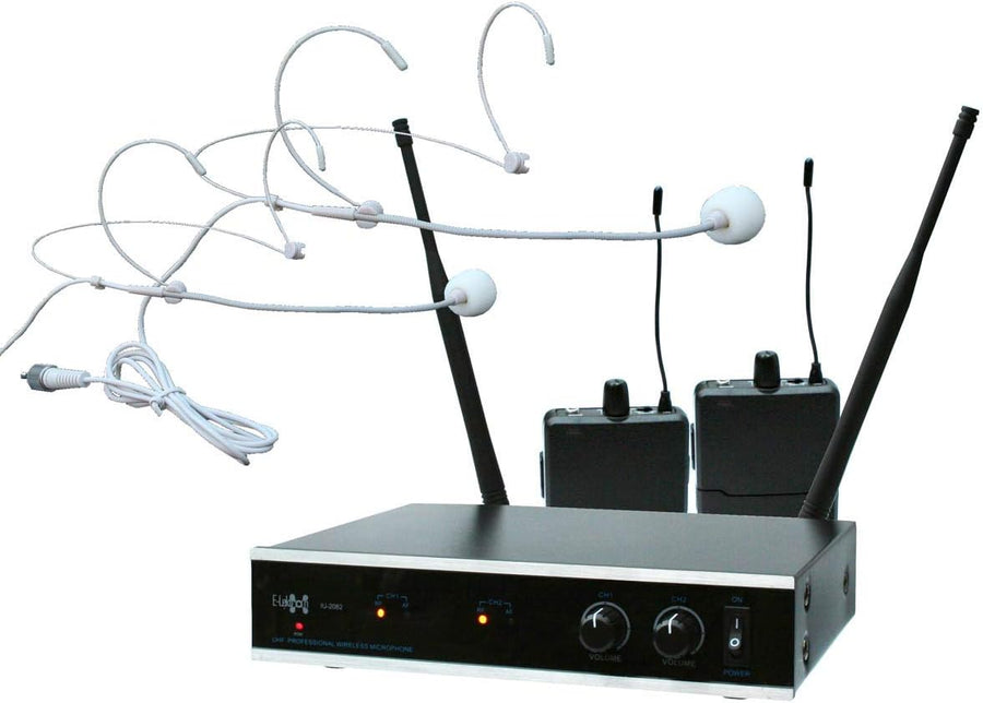 - Professionelles drahtloses UHF Funkmikrofon-System mit 2x Headset-Mikrofon