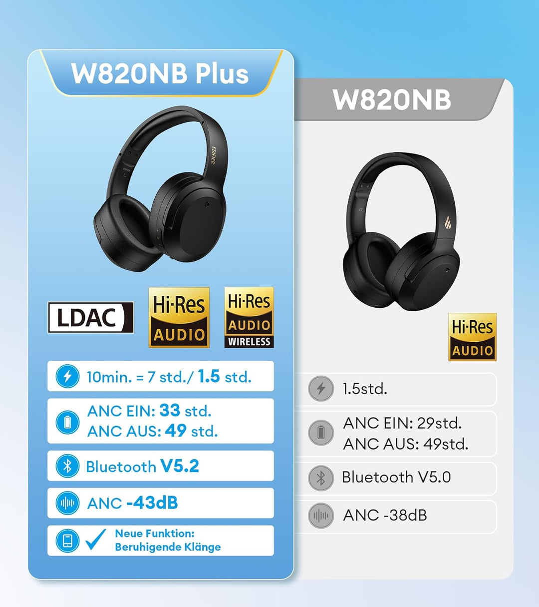 - 🎧Null-Druck-Patent-Ohrmuscheln🎧 Die verbesserten W820NB Plus Kopfhörer wiegen nur 7,9 Unzen (220 g) und verwenden ein Polstermaterial aus Memory-Schaumstoff mit patentierter Null-Druck-Sensationstechnologie, die Ihnen auch mit einer Brille ein
