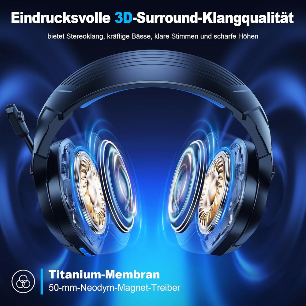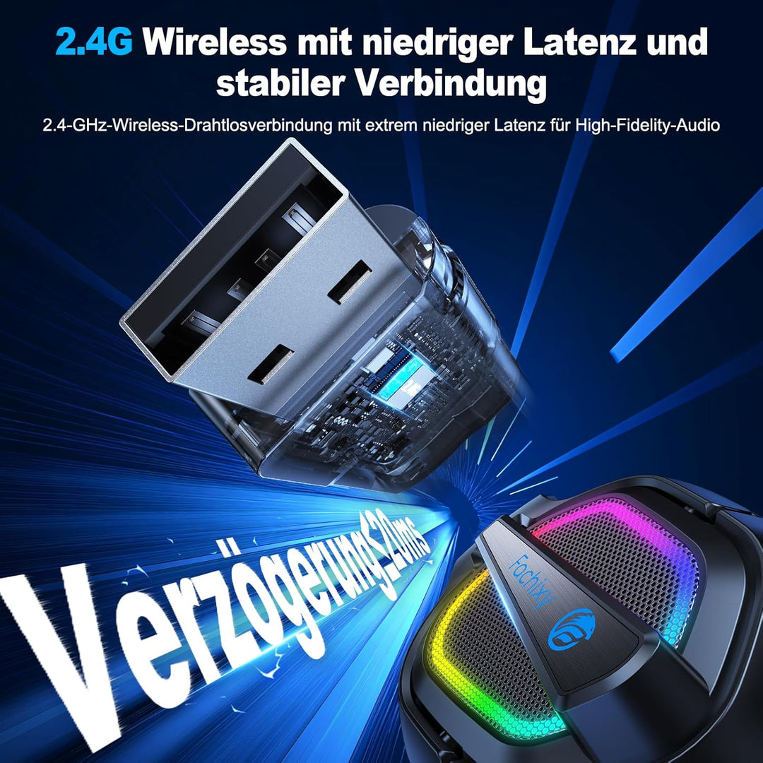 - đ¶ăStereo-Surround-Sound-QualitĂ€tăDas Fachixy Wireless Gaming Headset ist mit 50 mm High-Density Dual-Neodym-Audiotreibern ausgestattet, dank der reaktionsschnellen Audiotreiber können Sie ein immersives Spielerlebnis mit unglaublich