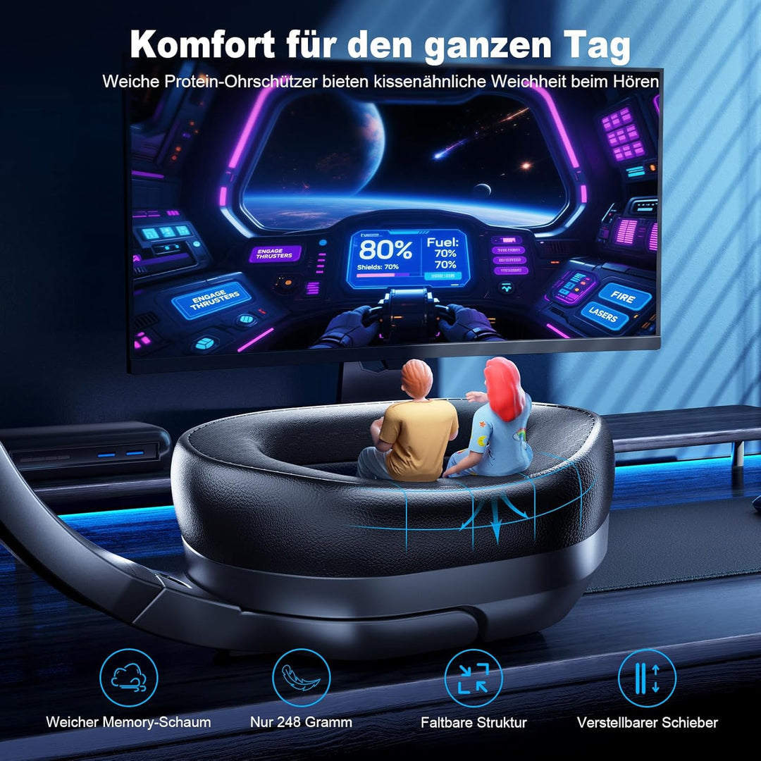 - đ§ ăErgonomisches DesignăDer bequeme und leichte KopfbĂŒgel und die Ohrpolster können den Druck auf Kopf und Ohren abfedern und 93,4 % des LĂ€rms physisch isolieren. Fachixy Wireless Gaming Headset bestehen aus hautfreundlichem und atmungsaktivem