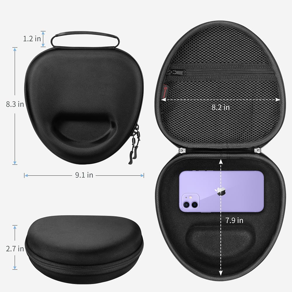 - 【Spezielles Design】 Perfekt passend für AirPods Max Kopfhörer. Innengrösse: 8,2 * 7,9 * 2,7 Zoll, Aussengrösse: 9,1 * 8,3 * 2,4 Zoll. (Gerät und Zubehör sind nicht im Lieferumfang enthalten).