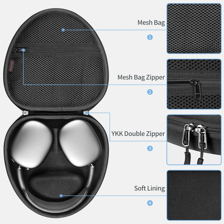- 【Voller Schutz】 Hartes EVA-Aussengehäuse und weiches Innenfutter, um AirPods Max vor Stössen, Stürzen, Verschüttungen, Kratzern, Staub und Wasser zu schützen. Schützen Sie Ihre AirPods Max.