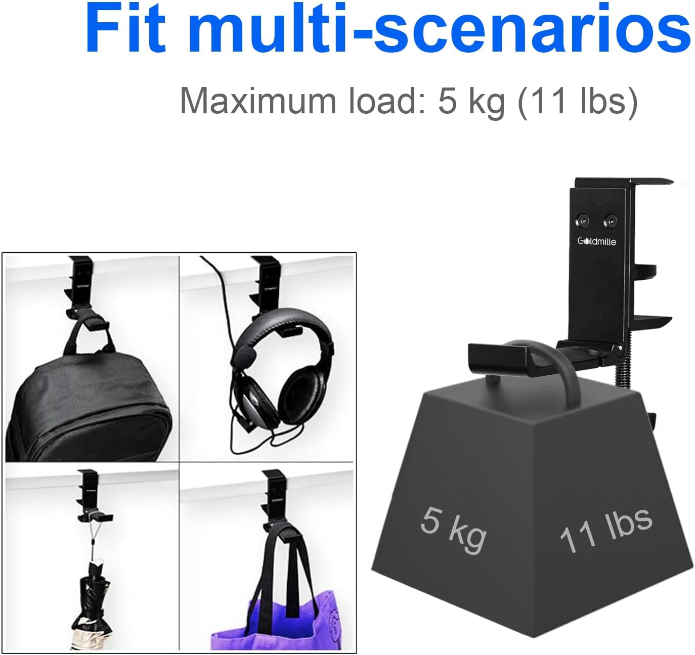 - Verstellbare Klemme: Der Kleiderbügel kann leicht gedreht und festgezogen werden, basierend auf der Dicke des Schreibtischs (bis zu 5,2 cm), und ermöglicht eine feste Befestigung auf den meisten Tischen.