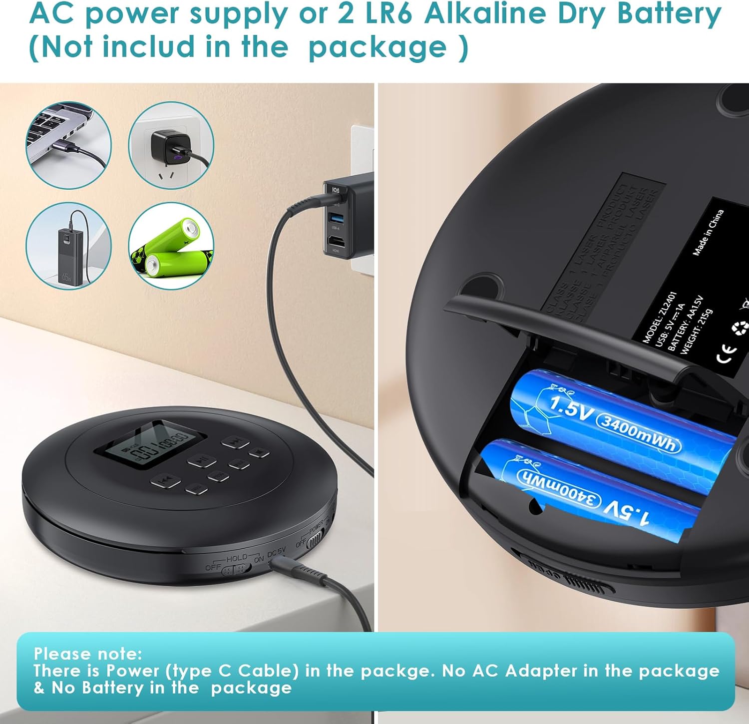 - HIFI Lossless Sound mit ASP-Funktion: Der Tragbarer CD Player ist mit einem eingebauten Hi-Fi-Stereo-Chip ausgestattet, der verlustfreien Klang mit kabelgebundenen Kopfhörern bietet. Unterstützt ASP Anti-Schock-System, kann es Unterbrechung der