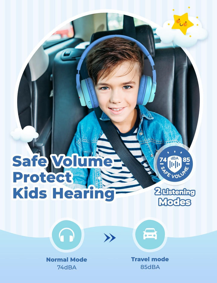 - Stereoton & 74/85dBA Lautstärkebegrenzung: Auch Kinder brauchen guten Klang - sie werden die integrierte 40-mm-Lautsprechereinheit lieben, die satte Bässe und lebensechten Klang liefert. Begrenzen Sie die Audiolautstärke zwischen 74 und 85dBA mithilfe
