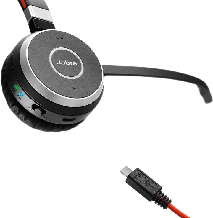- Lieferumfang: Jabra Evolve 65 Wireless Stereo On-Ear Headset, USB Bluetooth Adapter, USB-Ladekabel, Neoprentasche – Gewicht: 111 g – Farbe: Schwarz