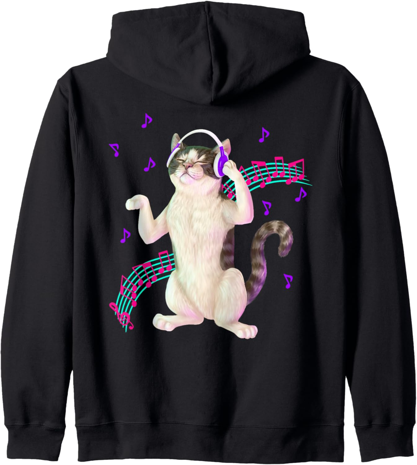 PRODUKTBESCHREIBUNGEN   Eine Katze hört Kopfhörer. Diese Katze verklemmt sich mit einigen Ohrhörern. Violette, blaue und rosa Musiknoten umgeben ihn. Dies ist eine musikalische Katze. Diese Katze, die zur Musik tanzt, funktioniert ideal für Musiker und diejenigen, die Musik mögen. Er hat ein glückliches, fröhliches Gesicht und lila Kopfhörer.   Mehr