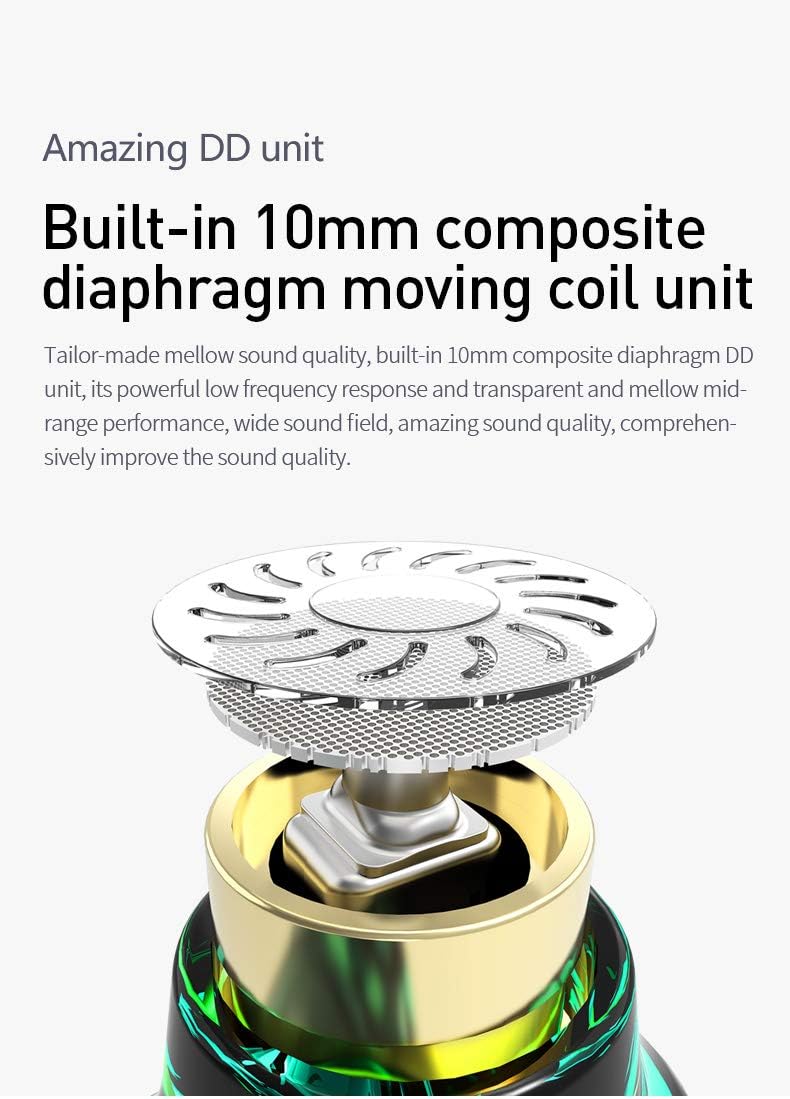 - BA-Einheit + 10-mm-Verbundmembran: Der KBEAR KS2 kabelgebundene Kopfhörer verfügt über eine hochwertige benutzerdefinierte BA-Einheit + 10-mm-Verbundmembran (PU + biologische Membran). Die DD-Einheit hat reichhaltige Infektionen bei mittlerer